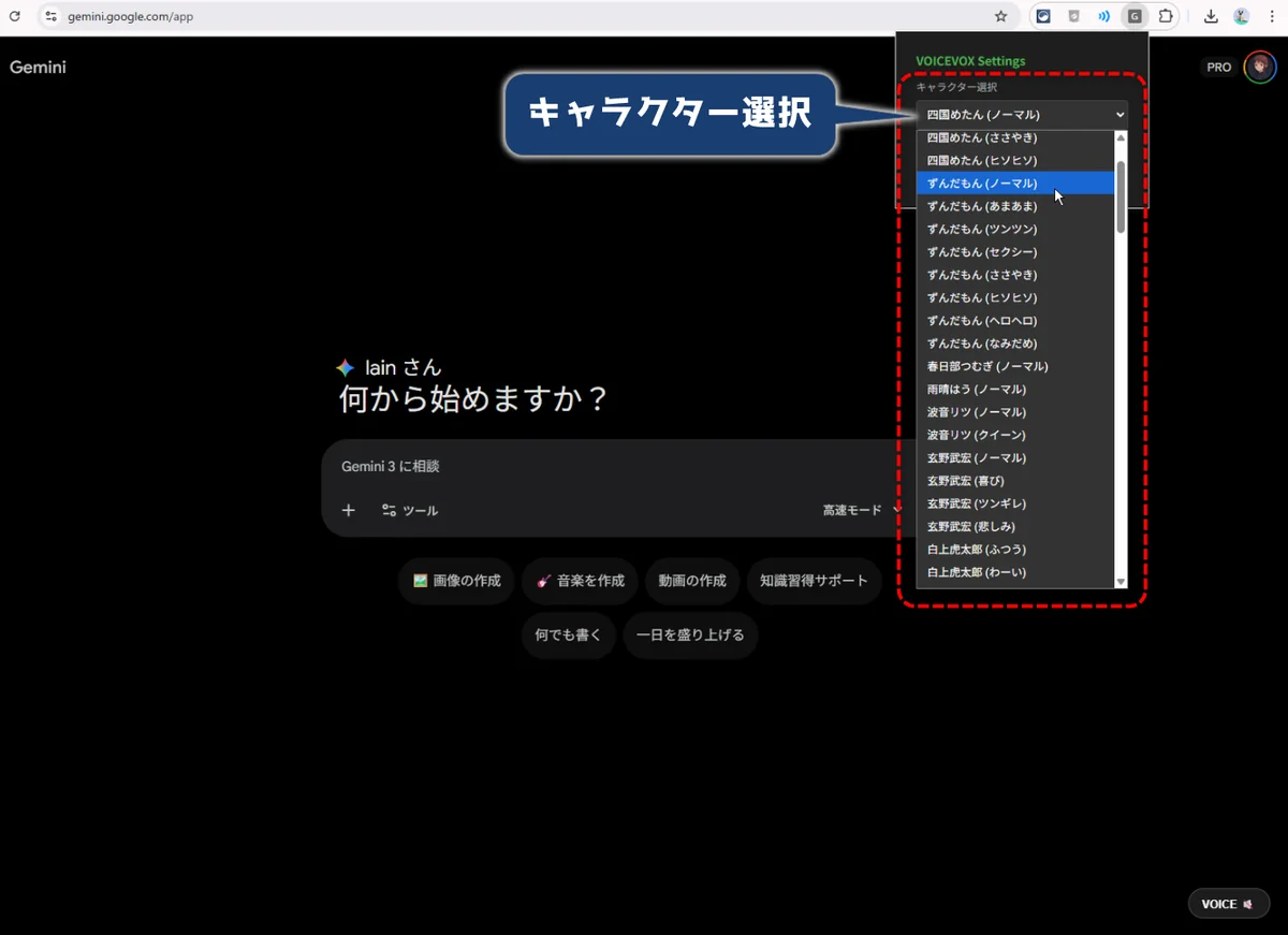 Gemini の回答を VOICEVOX で読み上げる Chrome 拡張機能。