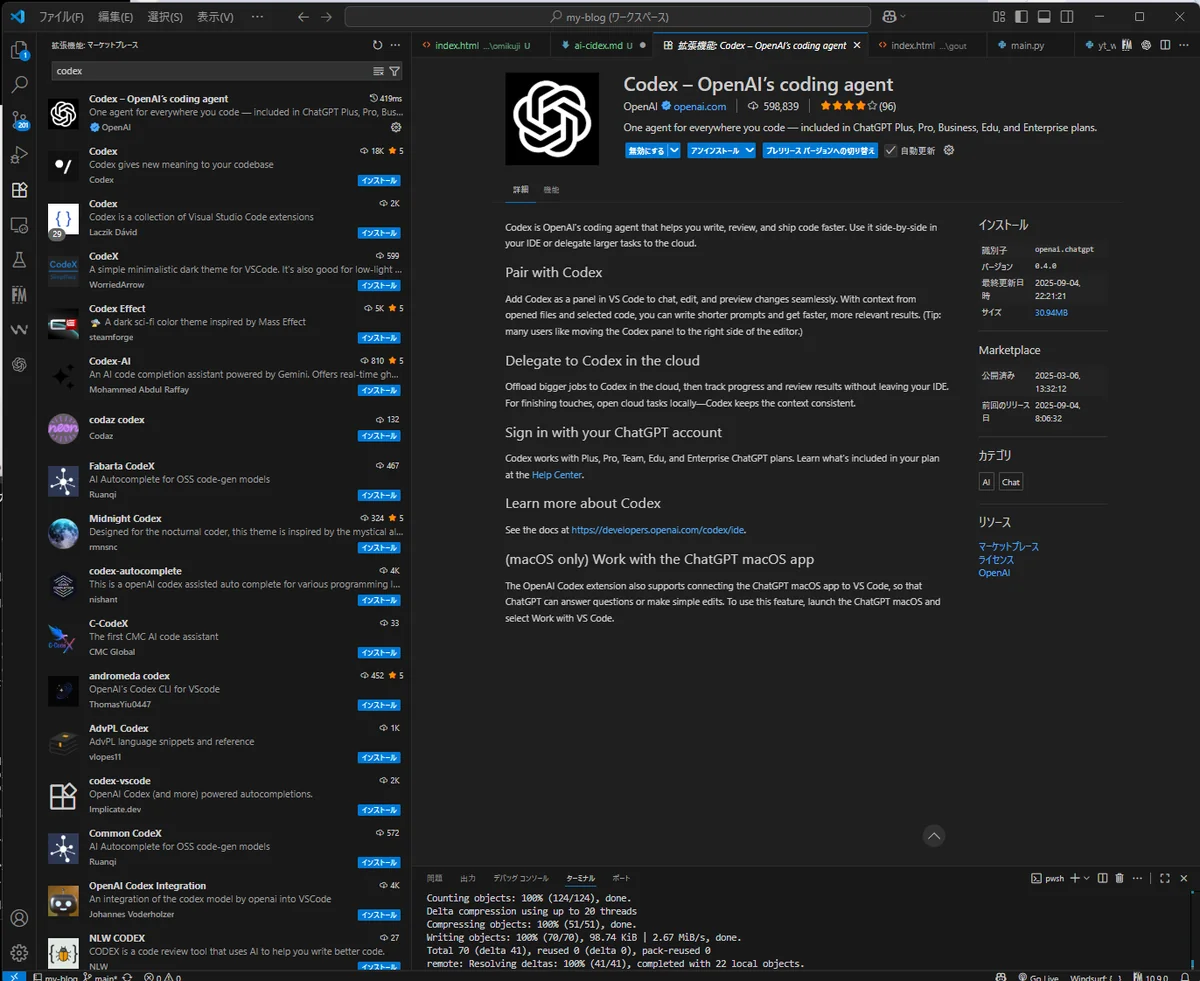 [AI-Agent] Codexとは? VSCodeで使えるAIペアプロ ― OpenAI Codex完全ガイド