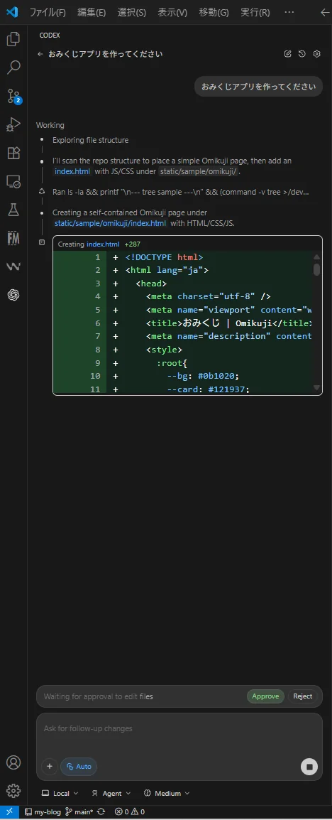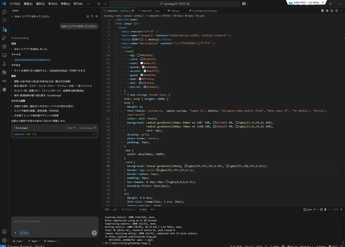 Codexで作成したおみくじアプリのサンプル