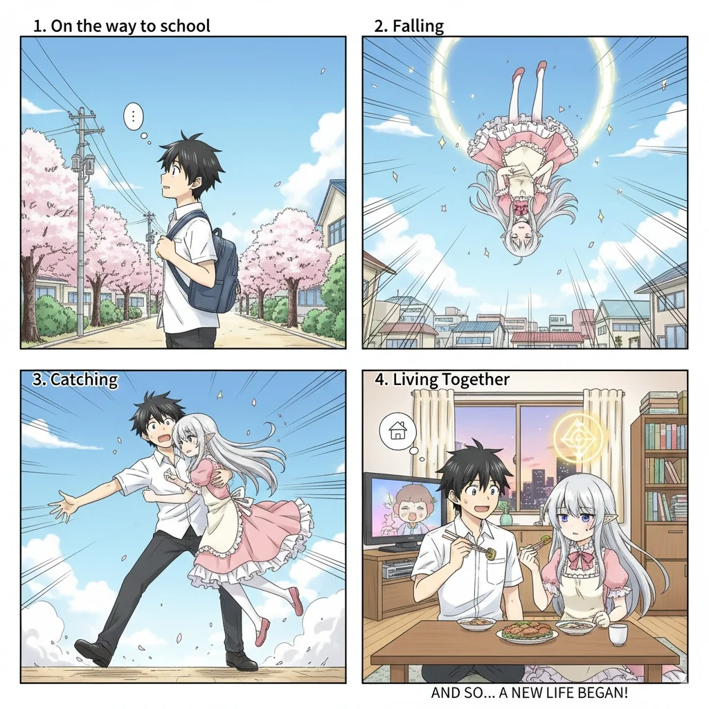 4. The protagonist begins living together with a girl from another world who fell from the sky.