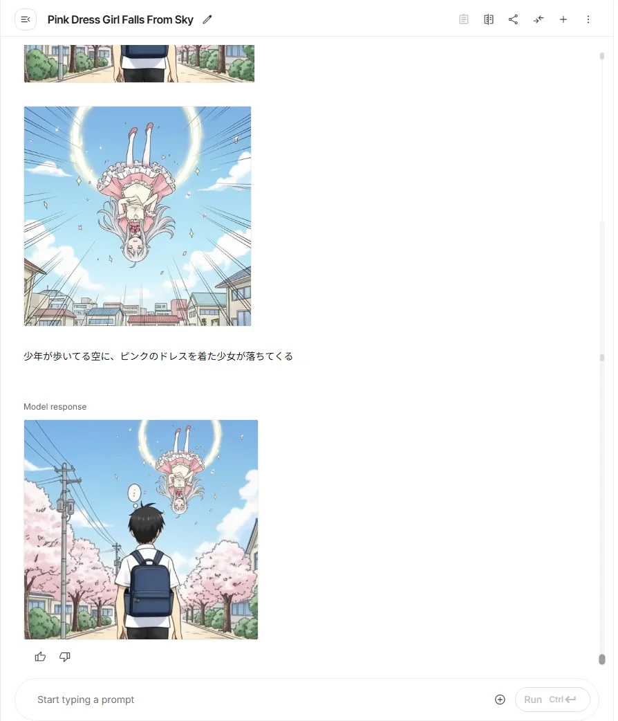 生成した画像に対して、「服の色を青に」「背景を少しぼかして」と自然言語で指示するだけで、ほぼ期待通りに修正されました。 従来の「再生成ガチャ」を繰り返すのではなく、画像を少しずつブラッシュアップしていける感覚は、新しい体験です。