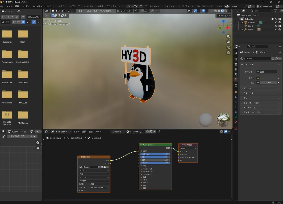 GLB は 20〜30 MB と大きめだが、Blender 5.0 で問題なく読める。