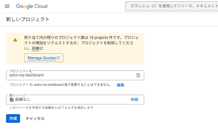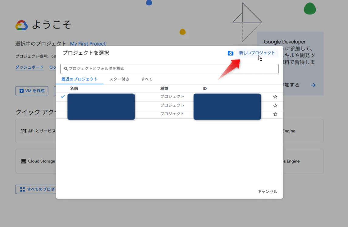 console.cloud.google.com- 新しいプロジェクトを作成します(例: