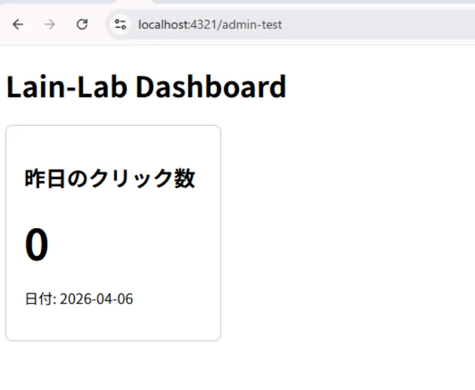 動作確認用に、昨日のクリック数だけを取得する src/pages/admin-test.astro を作成します。