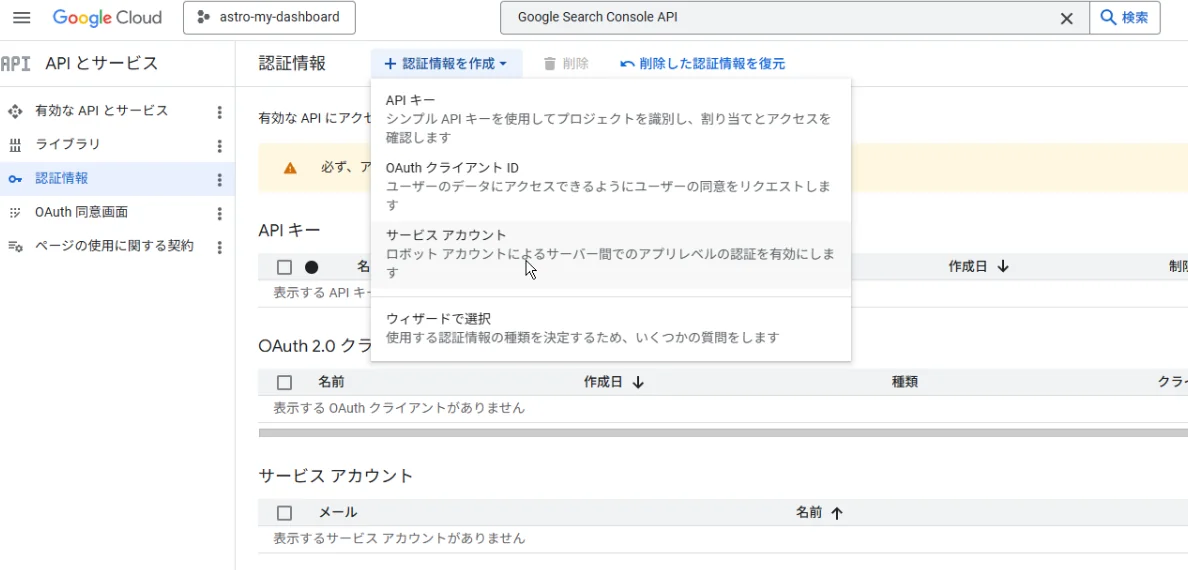 [Astro #11] 自作ダッシュボードへの道:Search Console APIの鍵取得とデータ取得テスト