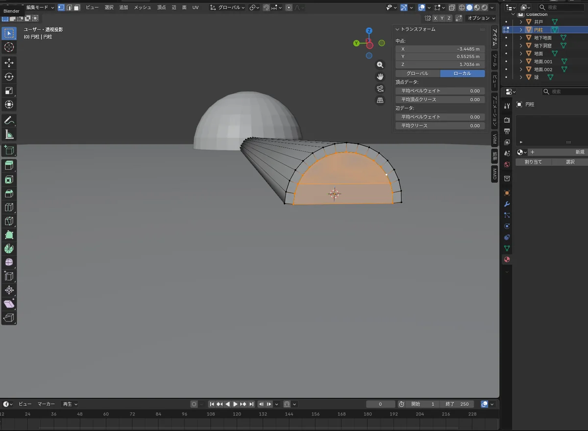- 対象:切り抜き用メッシュ(円柱)