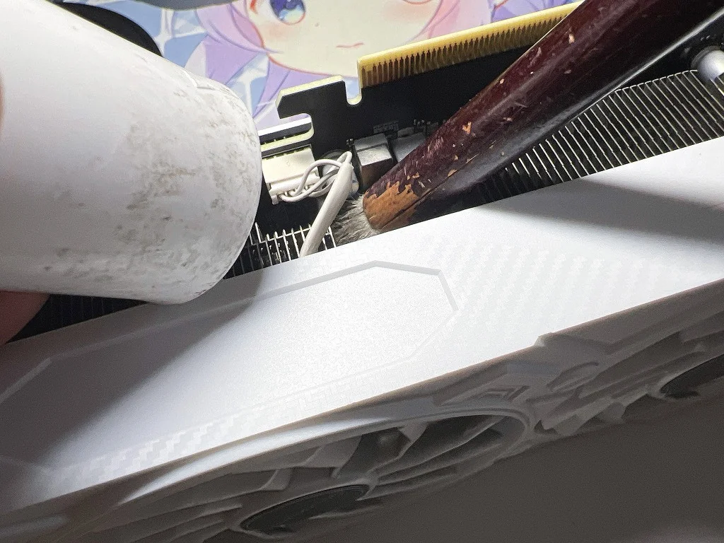 アイドル状態では、ファンは全く回転していないので、埃が溜まる事はまずありえないです。 尚且つ、ケース内の掃除を定期的にしているので、GPUも綺麗だと思い込んでました。