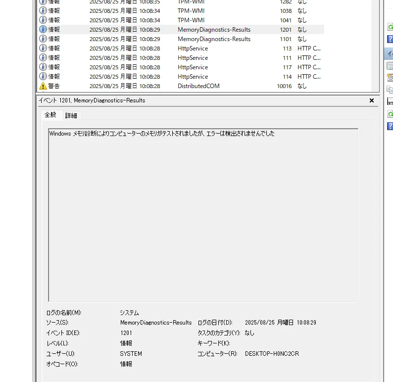 症状としては、突然フリーズして自動で再起動し、Windowsシステムログに情報が残るも、原因不明という感じです。
