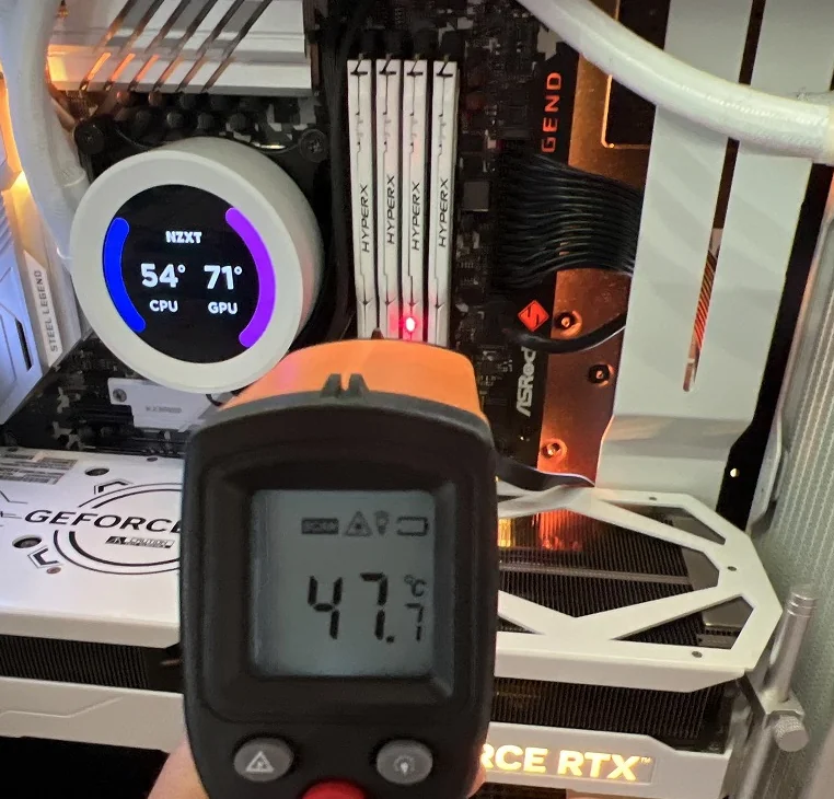 写真では47度になってますが、メモリカバーの表面温度なので、AIに聞くと+5℃ぐらいで考えた方がいいとの事でした。