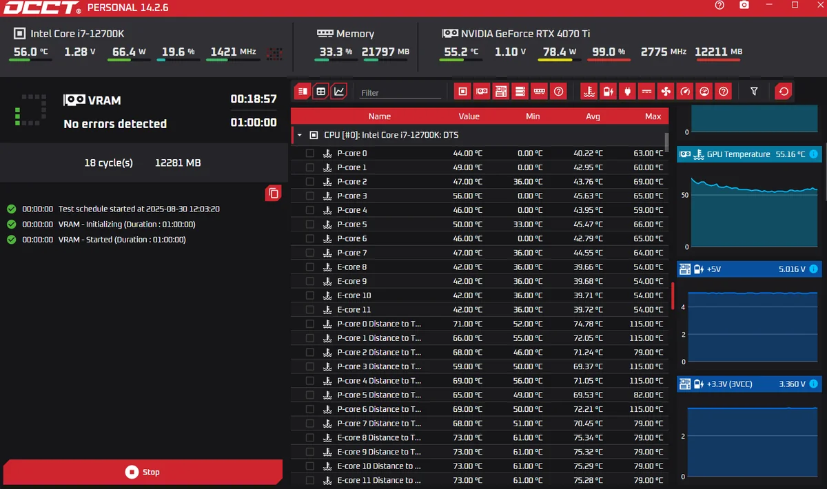 また、個人利用であれば 無料版(OCCT Personal Edition) で十分です。有料版との違いは商用利用や長期のレポート出力などで、家庭での診断や検証用途には不要です。