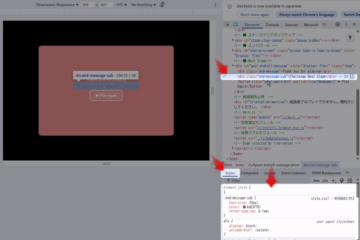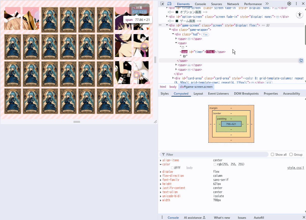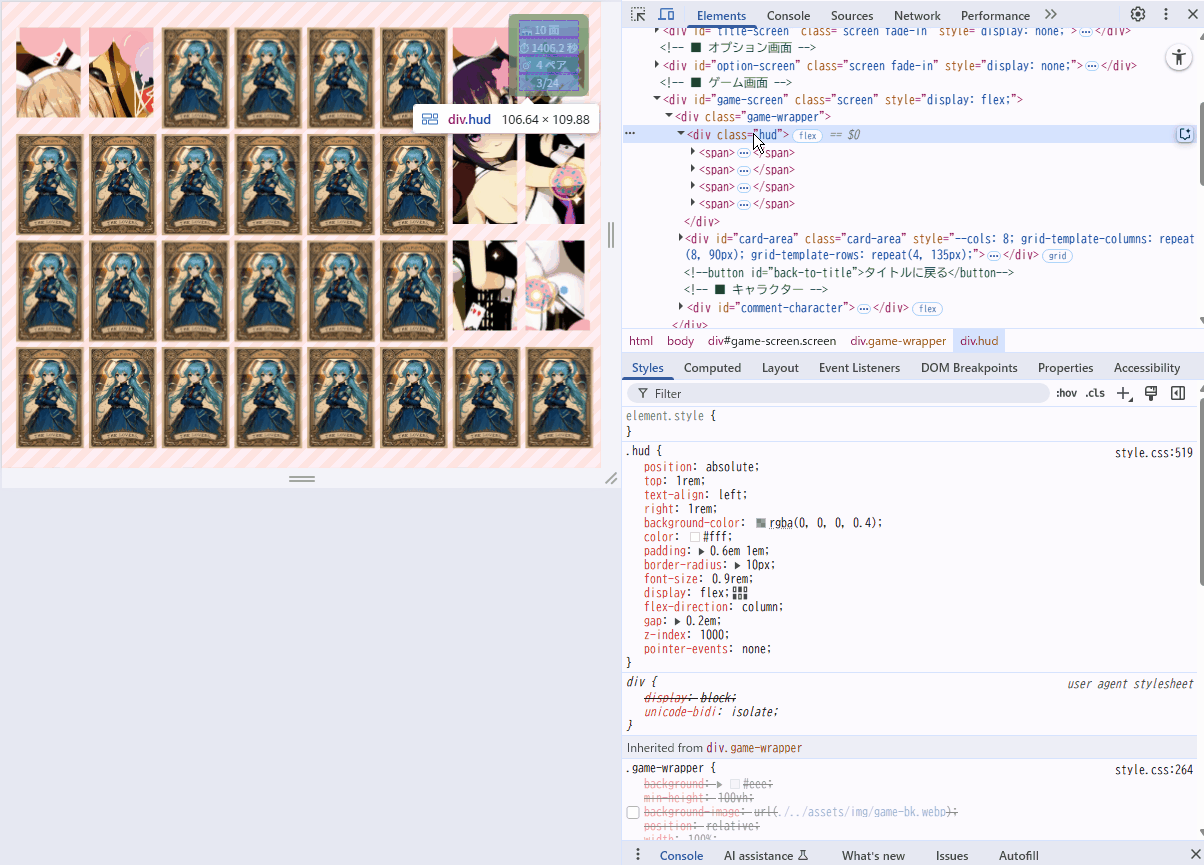 本記事では、ゲーム開発中に躓いたCSSについて、「どこでハマったか」「なぜそうなるのか」「どう対処したか」を、実践ベースでわかりやすく整理。初心者から中級者にステップアップしたい人へ、自分自身への備忘録も兼ねたメモシリーズの第1回。