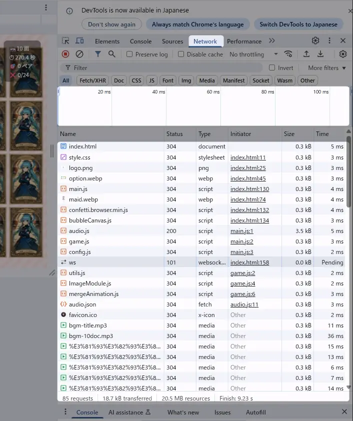 リソース(画像・JS・JSONなど)の読み込み状況を把握