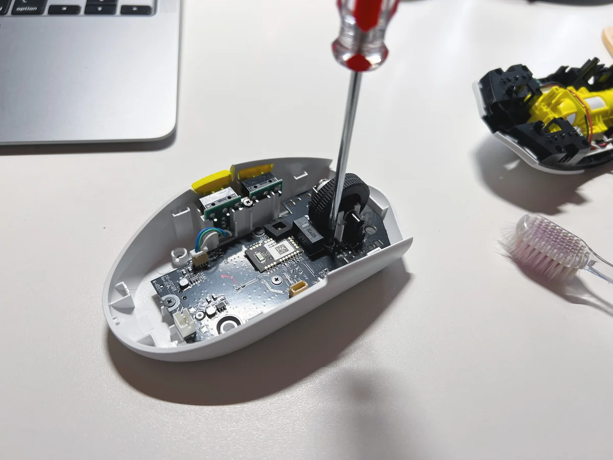 購入して半年ぐらい?のLogicoolマウス「 G304 」のスクロールが、逆走する不具合が出て、だましだまし使ってましたが、 Unityでアプリ開発するようになってから、マウスを使う機会が増え、尚且つ、動作テストでもスクロールによる拡大縮小でよく使う為、 我慢の限界を超えてオーバーホール、清掃して修理したのでそのメモです。