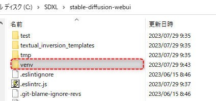 [SDXL]⇒[Stable Diffusion]フォルダ内の「venv」はリネームするか、削除。