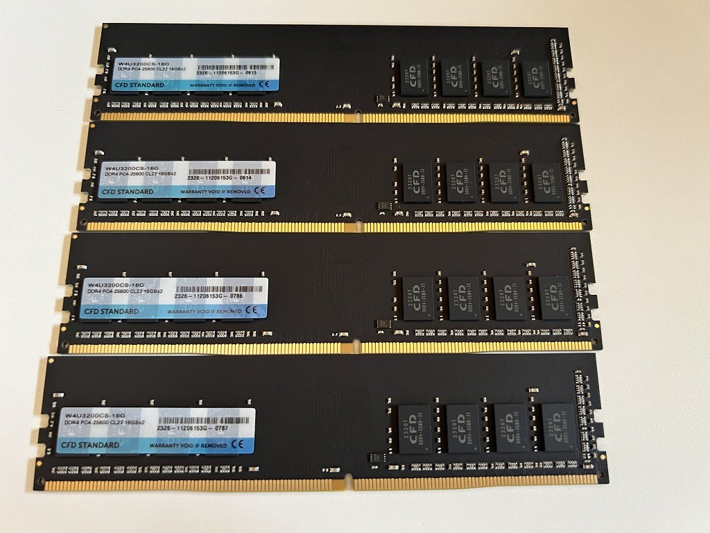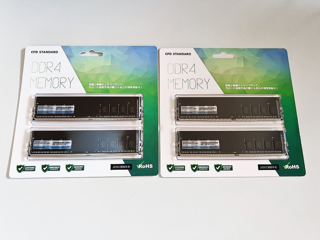 メモリの相性問題は最近パソコンでは起こりにくいようですが、念の為、全て新品に買い替えて、全部同じメーカーの同じロットでそろえています。