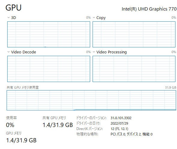 内蔵GPU「Intel UHD Graphics770」でメモリ消費