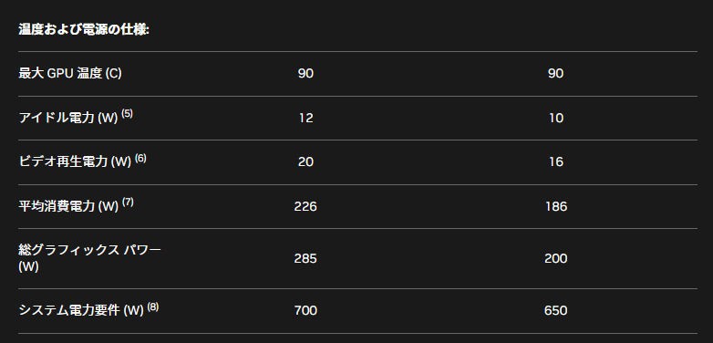 www.nvidia.com仕様⇒詳細をクリックすると温度情報を確認できます。