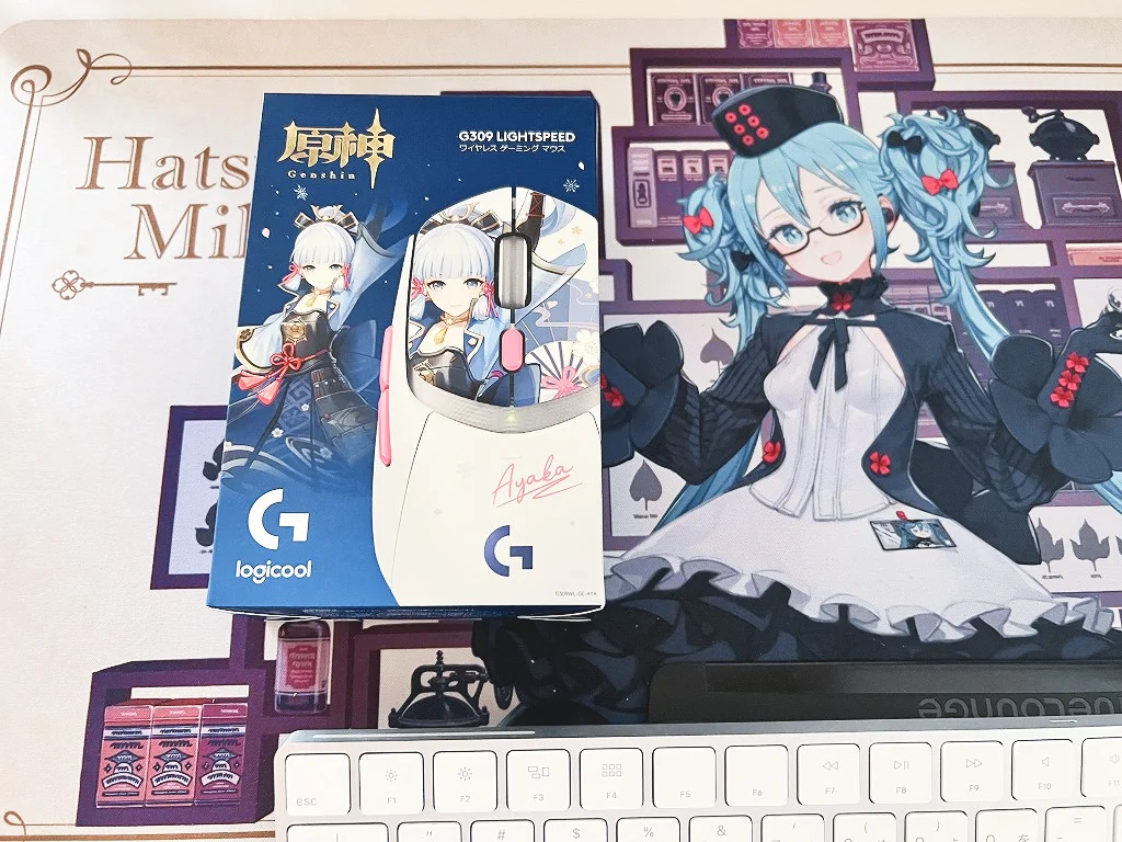 その精神を削るデバッグ作業の合間に、一つのパッケージが届いた。 Logicool G309 LIGHTSPEED ワイヤレス ゲーミング マウス(原神「神里綾華」特別モデル)。