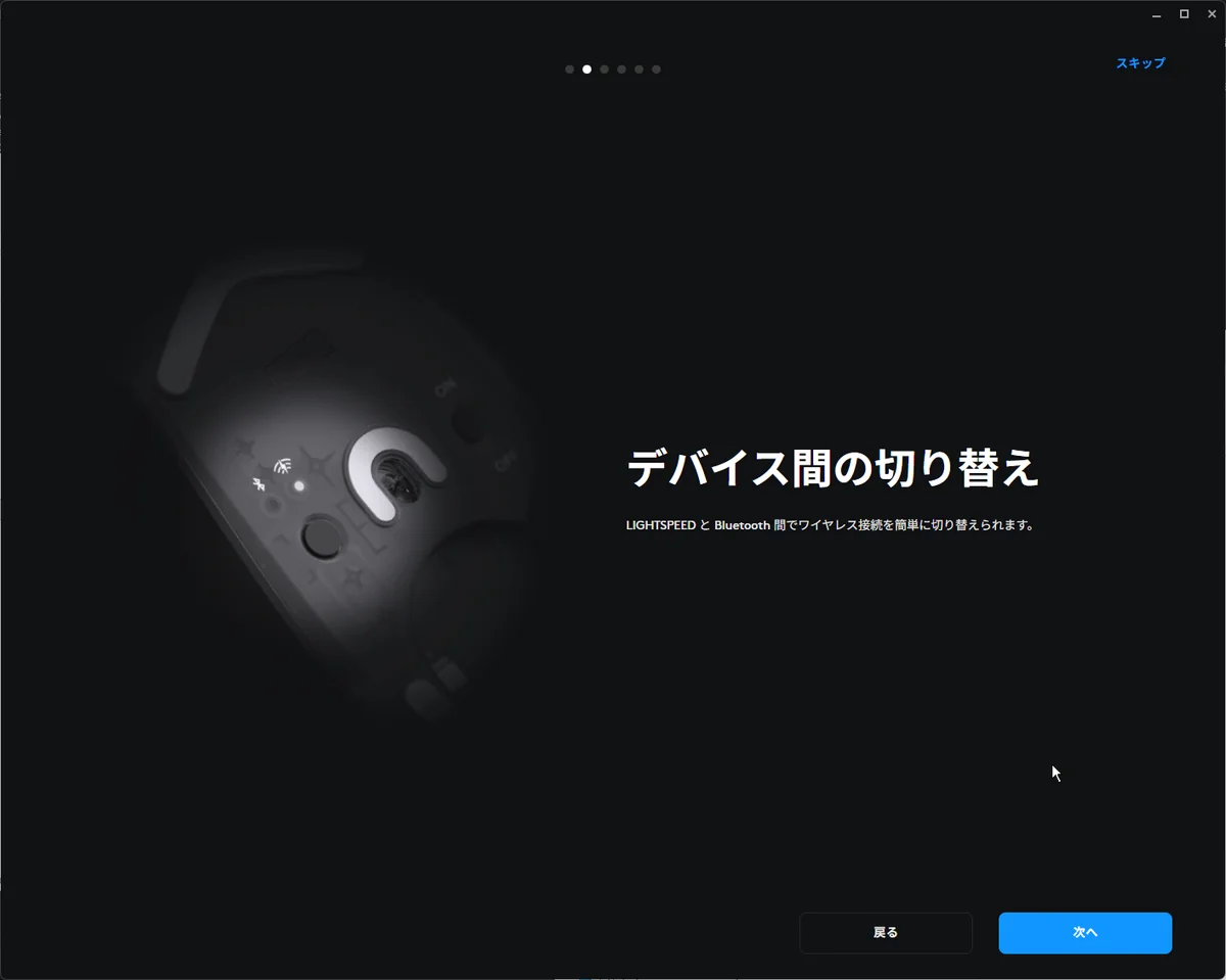 ホイールの下にあるボタンを押すと、さまざまな設定に進むことができます(箱から出したままでも、G HUBでカスタマイズした後でも)