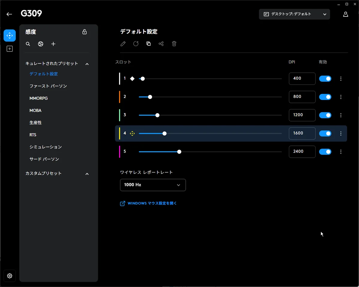 G304のスイッチは正直やや使いにくかったのですが、個人的にはG309ぐらいの大きさの方が使いやすい気がします。