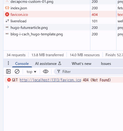 [Hugo] favicon.ico の 404 対策 [ERROR]