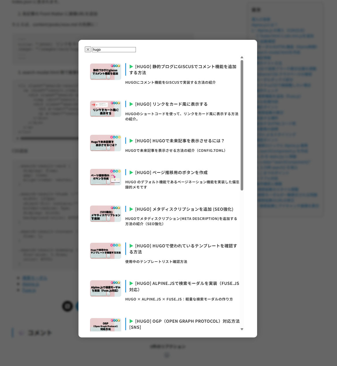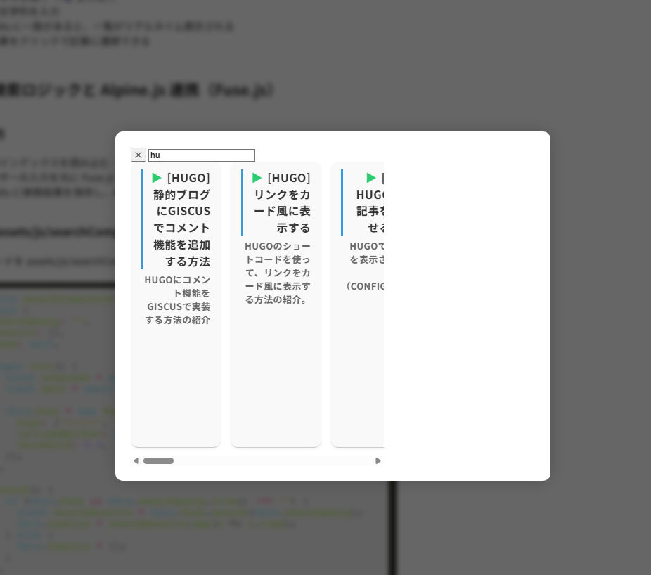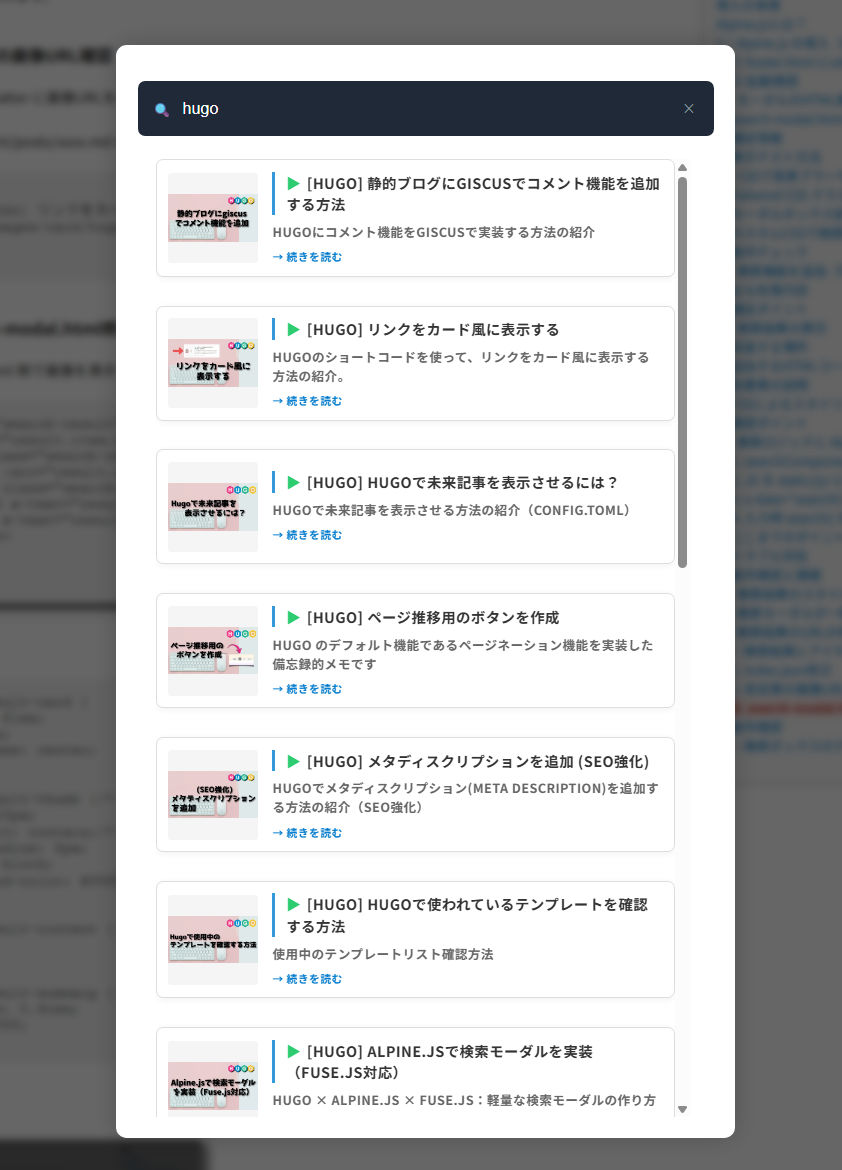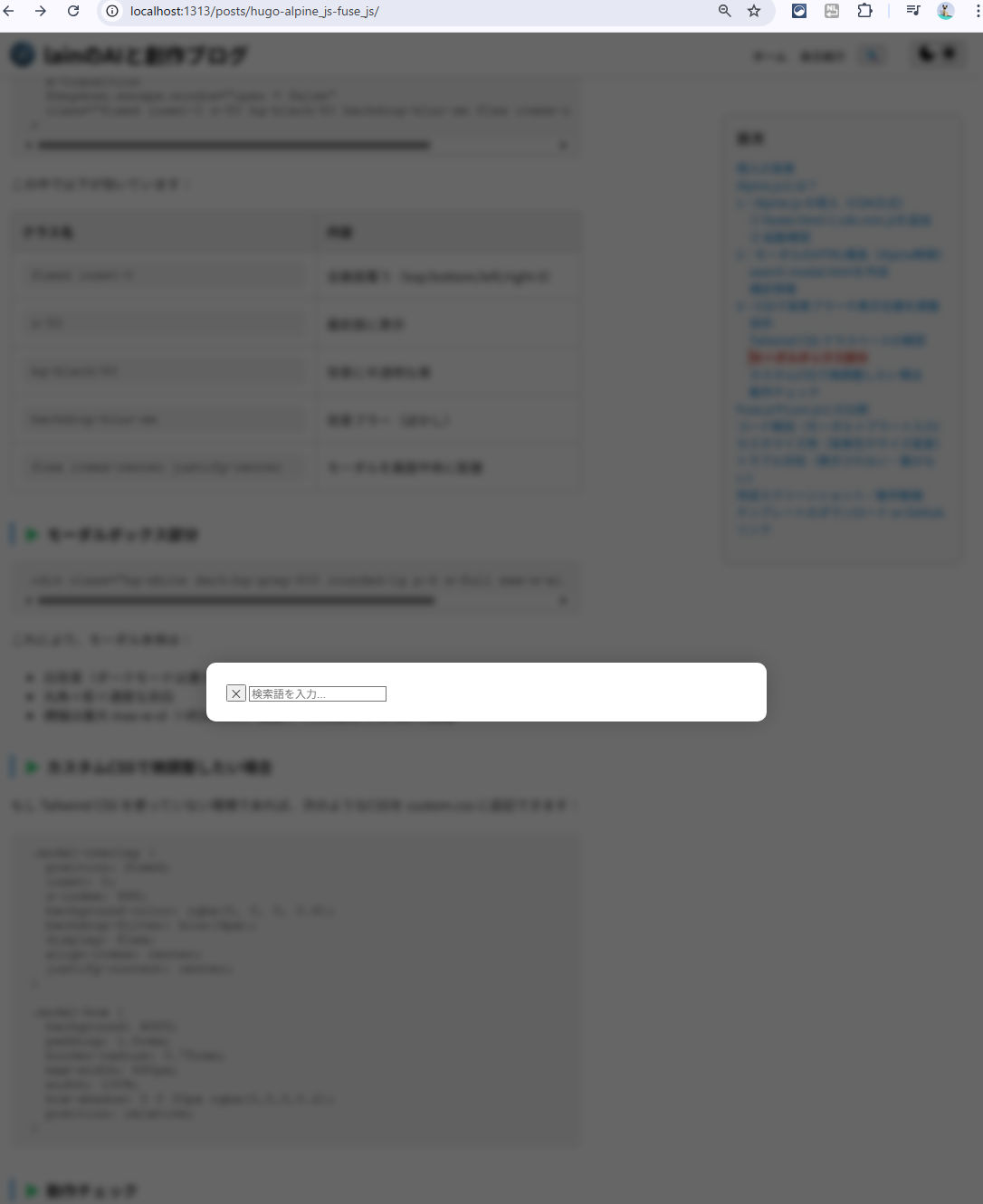 [Hugo] Alpine.jsで検索モーダルを実装(Fuse.js対応)