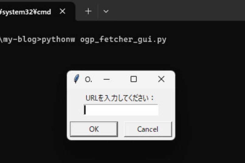 url = simpledialog.askstring("OGPカード生成", "URLを入力してください:")