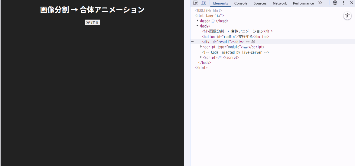<h1>画像分割 → 合体アニメーション</h1>