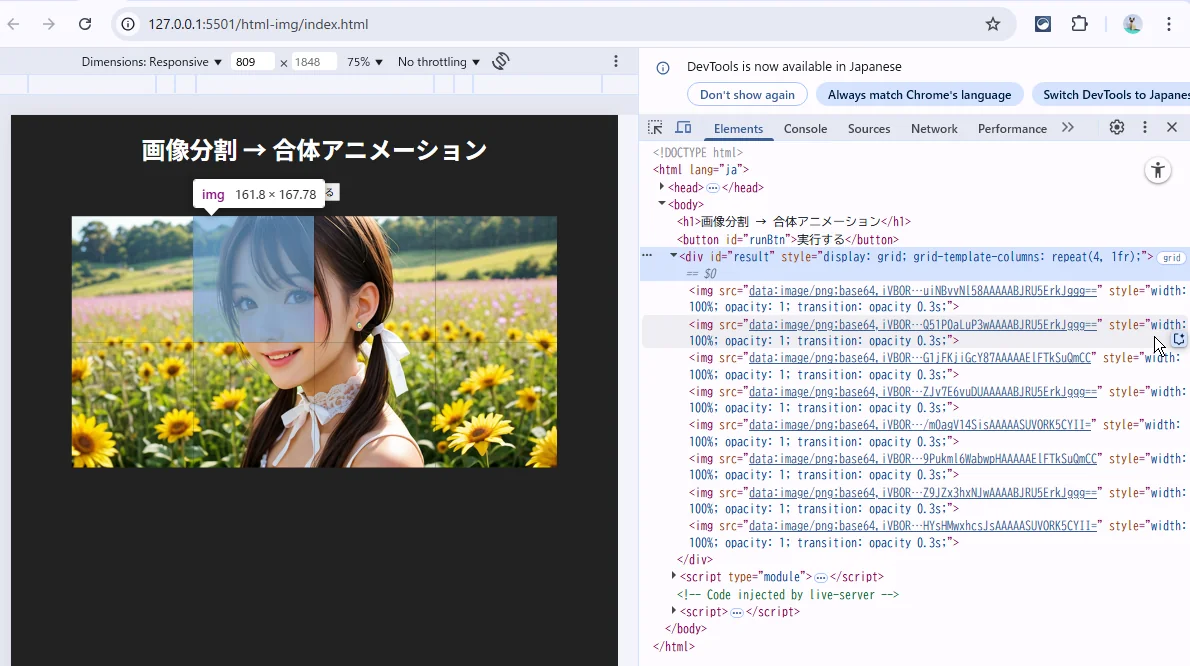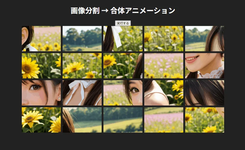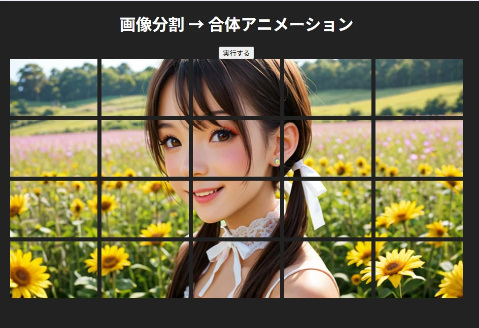 Canvasで画像を分割し、CSS GridとJavaScriptで合体アニメーション