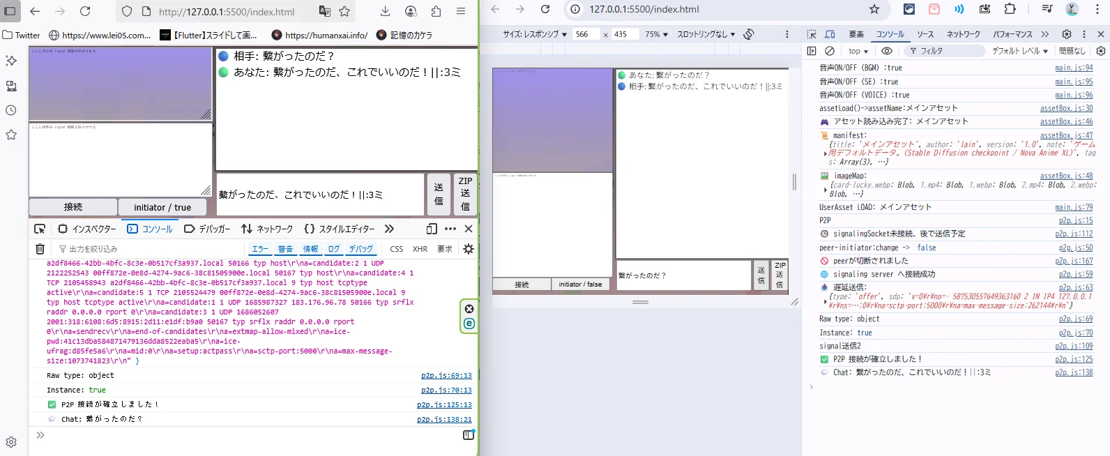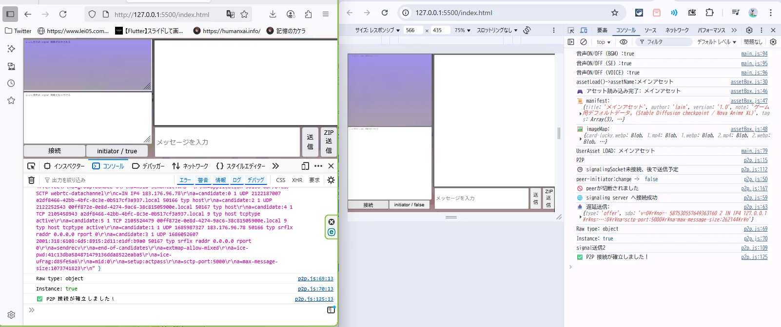 - peer.on(“signal”) タイミングが難しい → ページ読み込み順を工夫