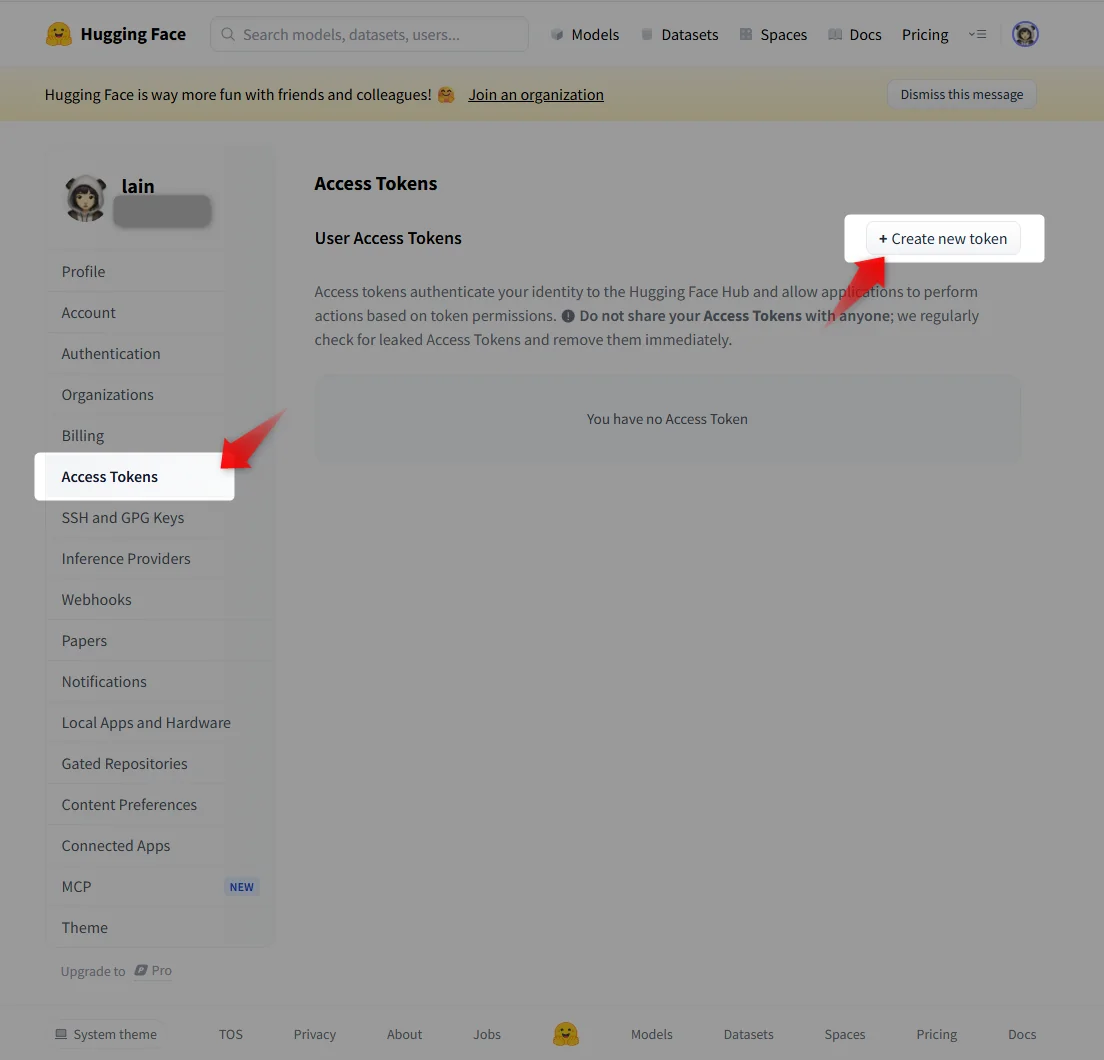 Hugging Faceのログイン(必要に応じて)