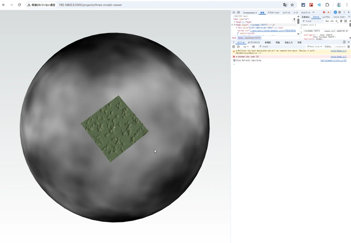 R3F で 「雲の球体(SkyDome)」を描画する部分 だけを切り出したもの。 内部では次のような処理をしている: