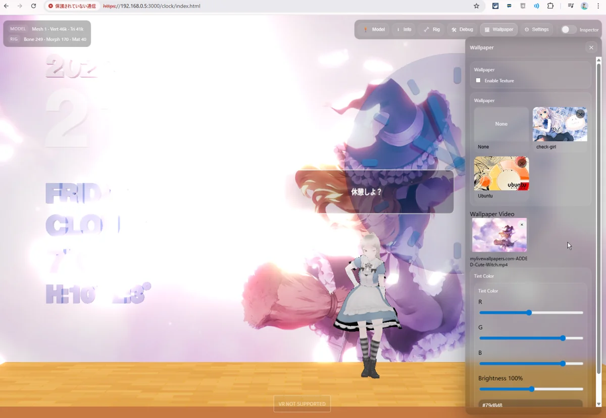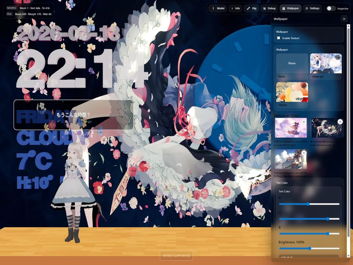 今回は、Three.js + MMD 時計アプリに対して、静止画壁紙に加えて 動画壁紙機能 を実装しました。