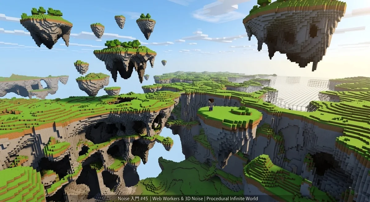 Procedural 3D Noiseで浮遊大陸を生成|「高さ」から「密度」へ進化するボクセル世界(Web Workers / Three.js)