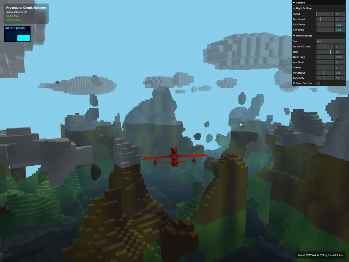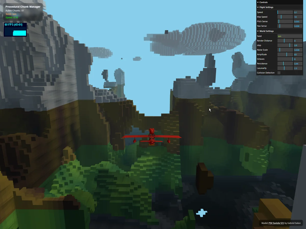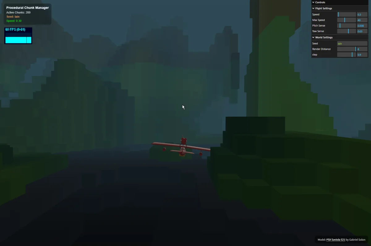 これで、ただのノイズの実験場が、プレイヤーの操縦スキルを試す「無限の探索型フライトゲーム」へと劇的な進化を遂げました。