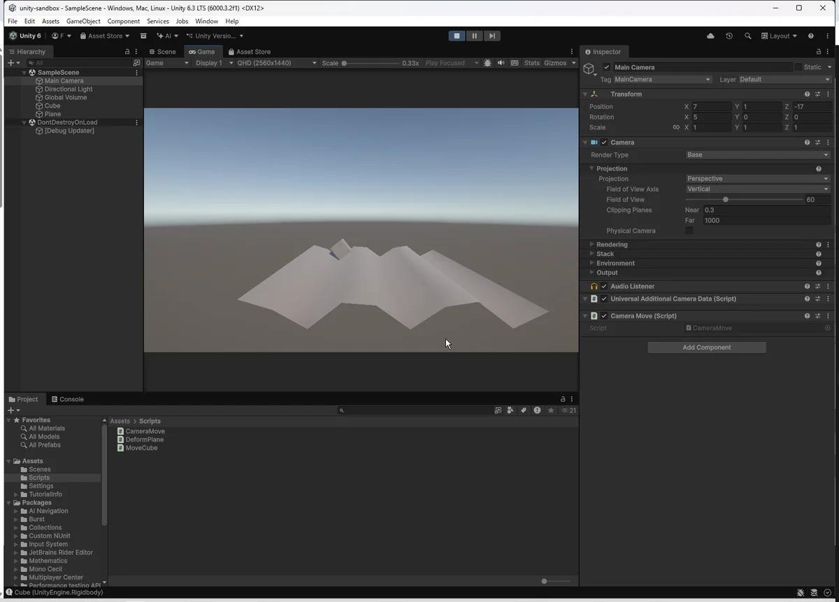 まずは 「カメラもスクリプトで動かせる」 という感覚を掴むのが目的。