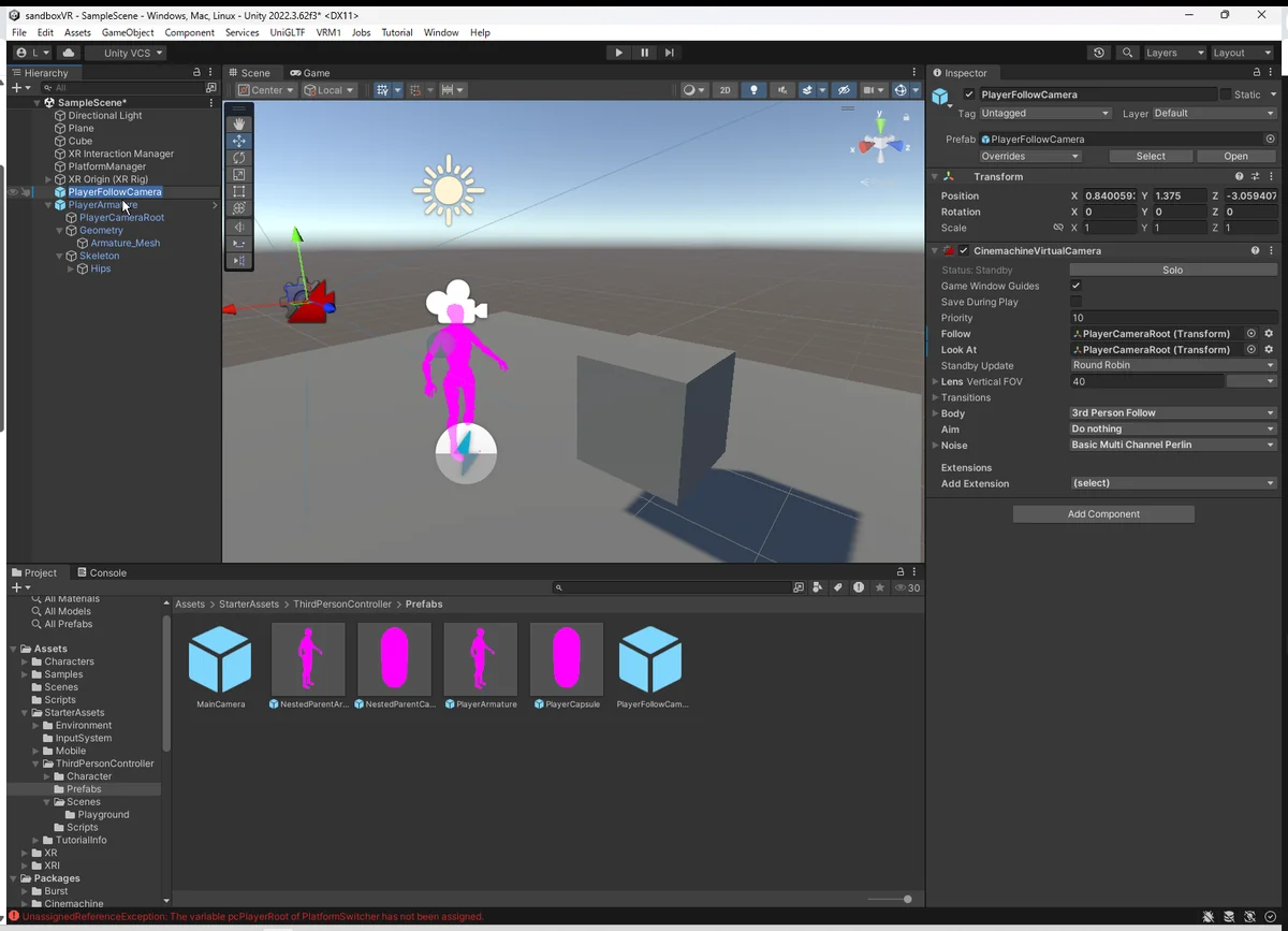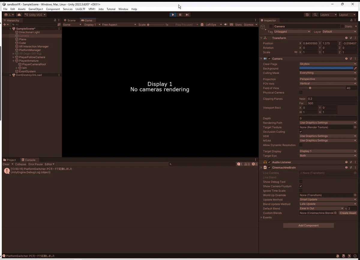 - 単一のシーンで PC用 3rdPersonController と VR用 XR Origin が共存できる