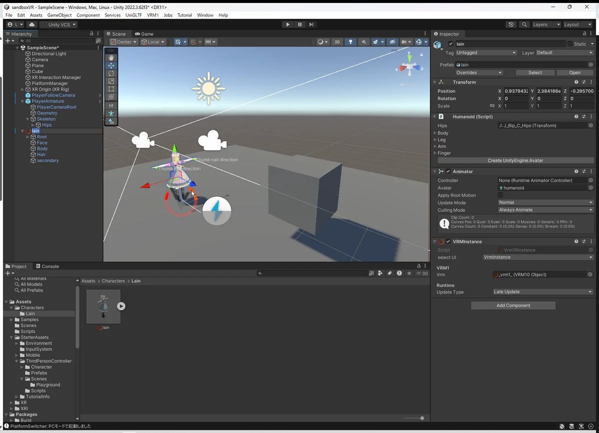 [Unity #16] Starter Assets + VRM + OpenXRを同一シーンで共存・判定切替