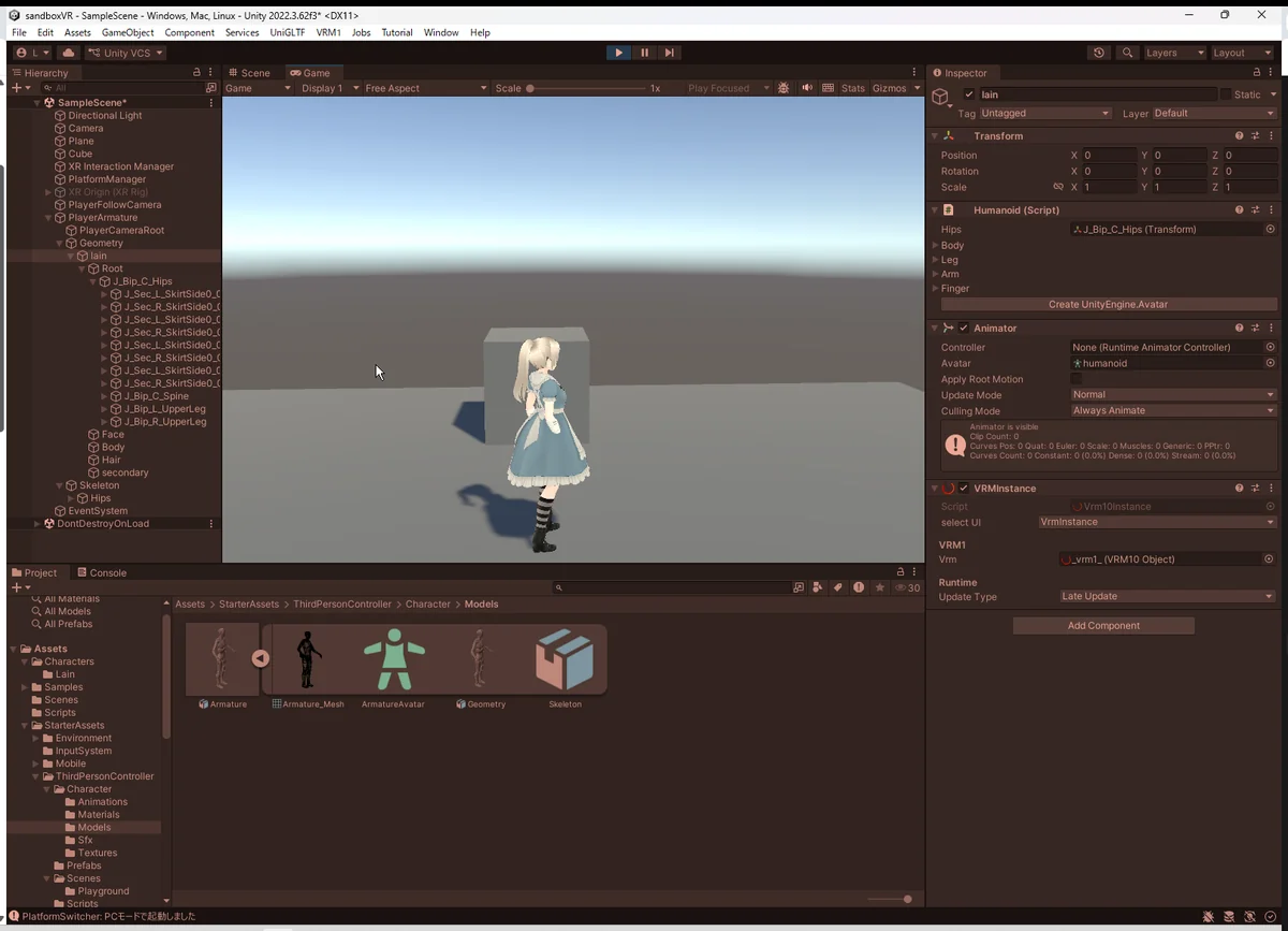 この段階でもう “PC版 VRM 3rdPersonController” が完成している。