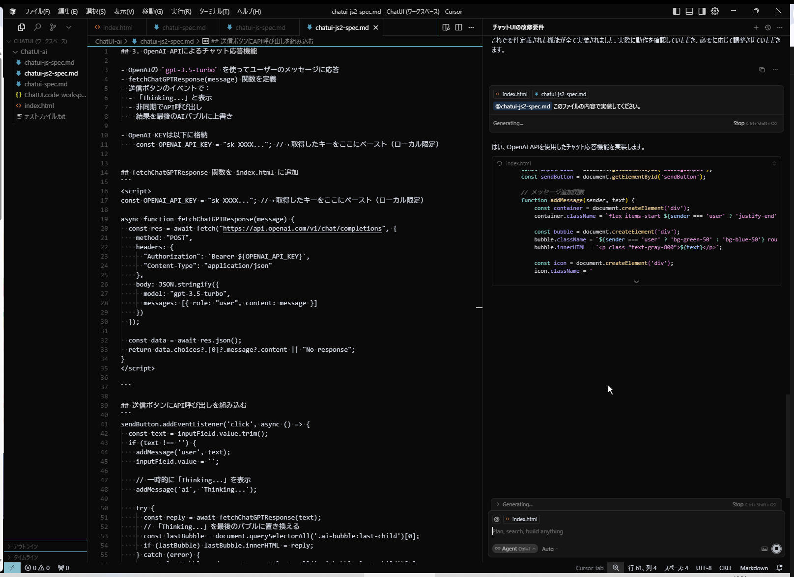 これをCursorへドロップしこのファイルを元に実装してくださいと要求。