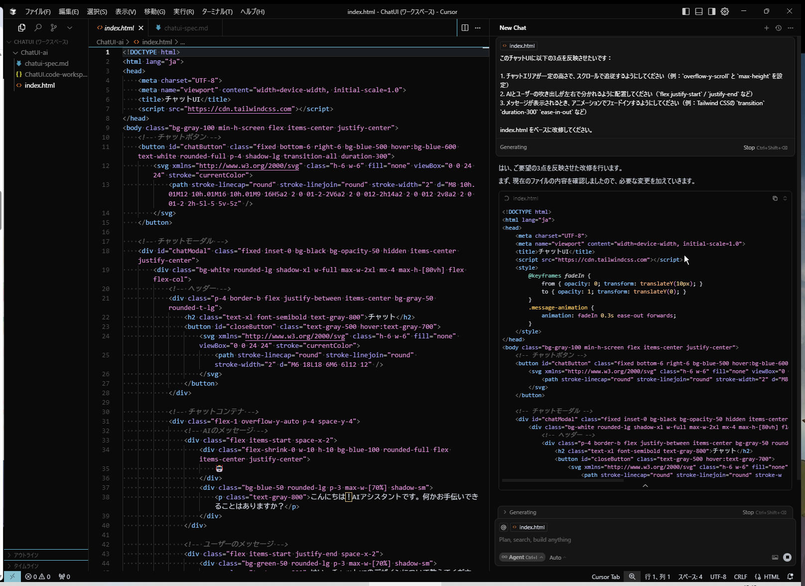 このステップでは、既存のチャットUIを Tailwind CSS を活用して洗練されたものに再設計し、見た目とユーザビリティの両面から改善していきます。