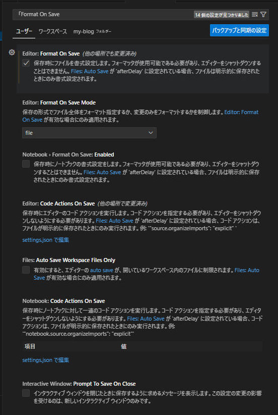 これで、ファイル保存時に自動でコードが整形されるようになります。