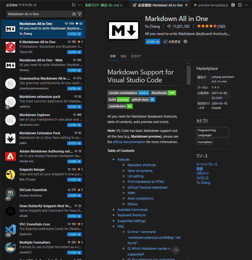 Markdown All in One は、Markdown の編集を効率化するための拡張機能です。
