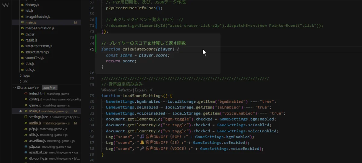 ChatGPTのように「自然言語だけでプログラミングを進める」バイブコーディングスタイルと比較すると、Windsurfは「構文の一部を補完・修正する」という補助スタイル寄り。